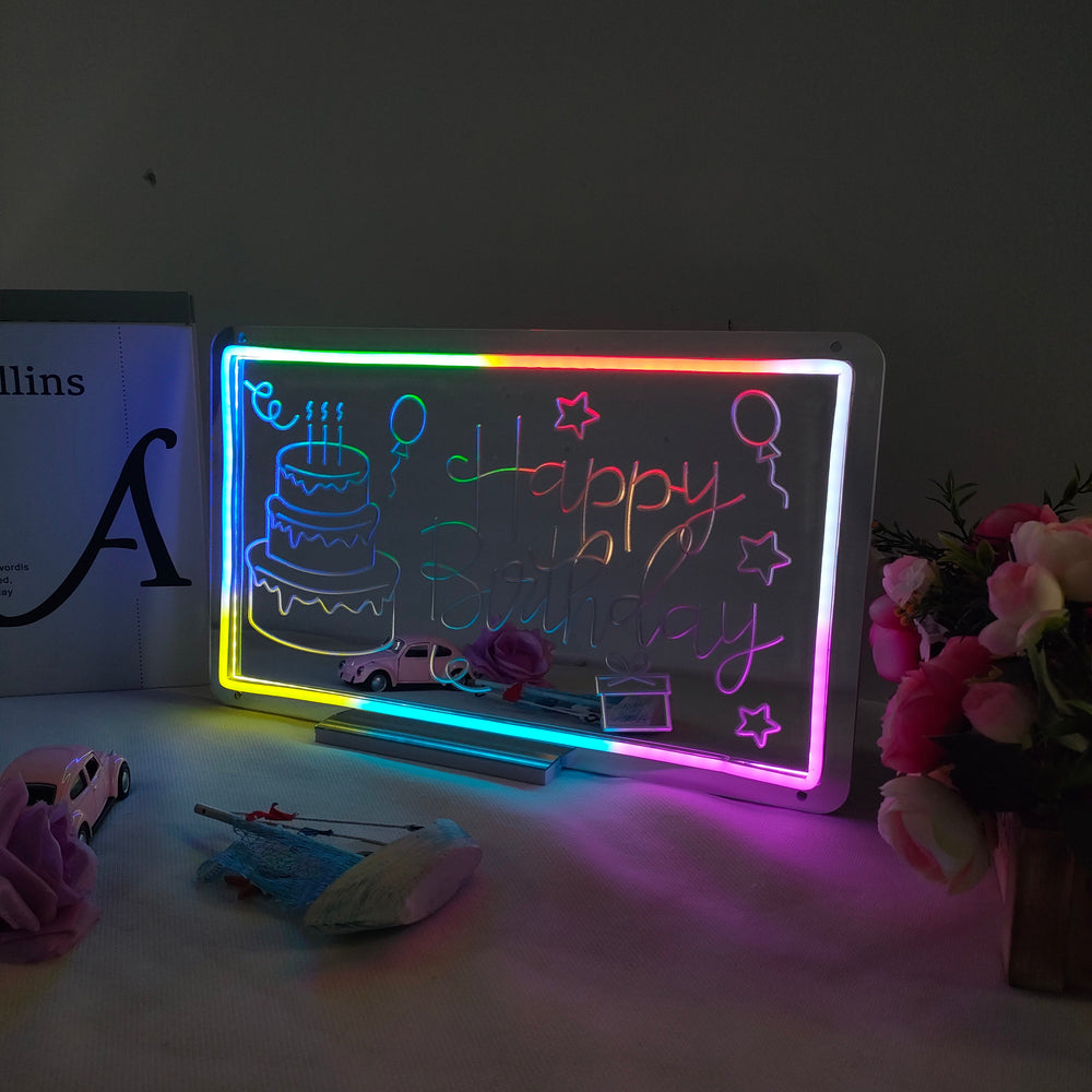 "Happy Birthday, Drømmende Fargeendring" Neonskilt med spejlbagside