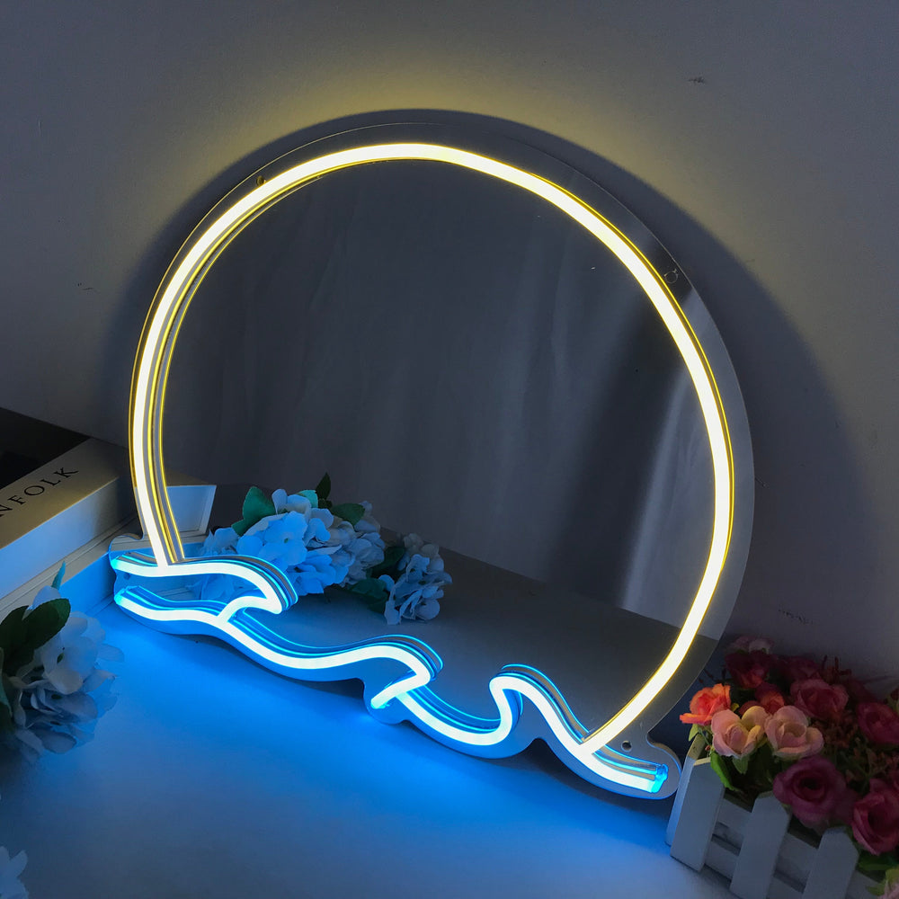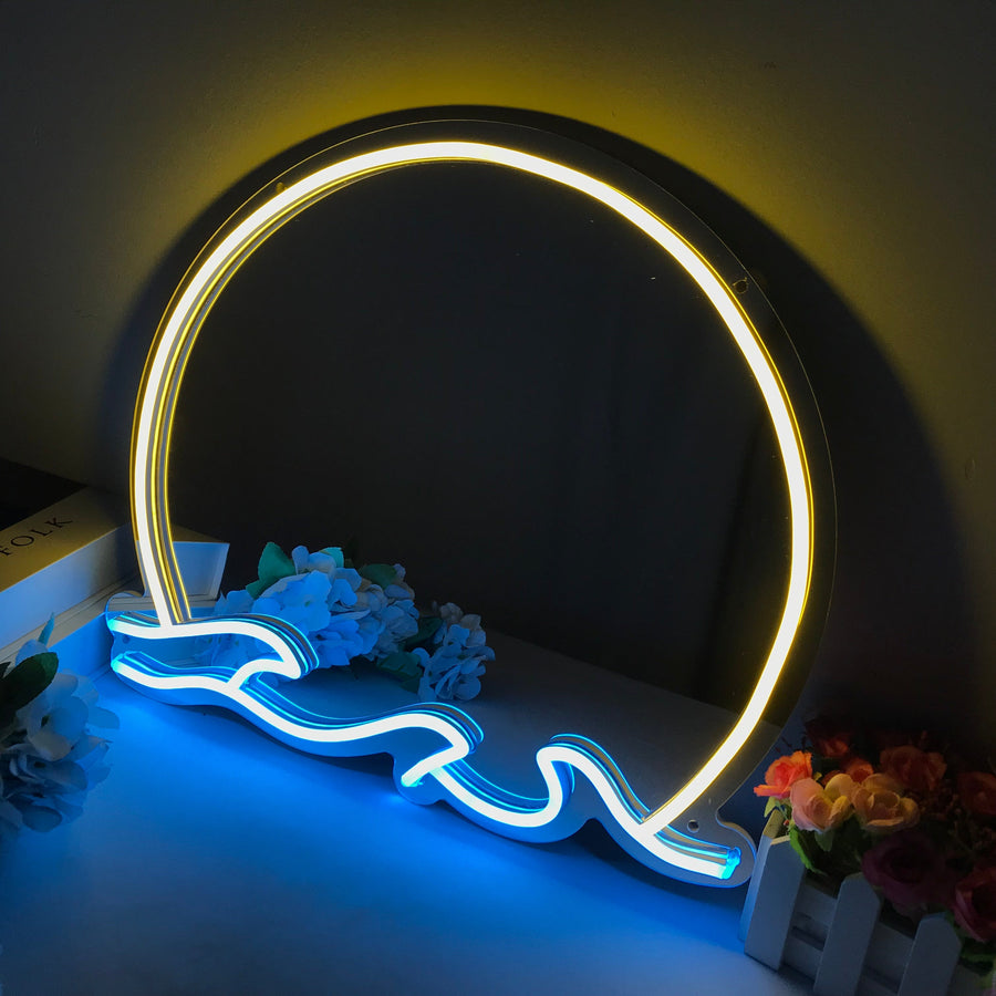 "Hav Solnedgang Solopgang Bølge, Drømmende Fargeendring" Neonskilt med spejlbagside
