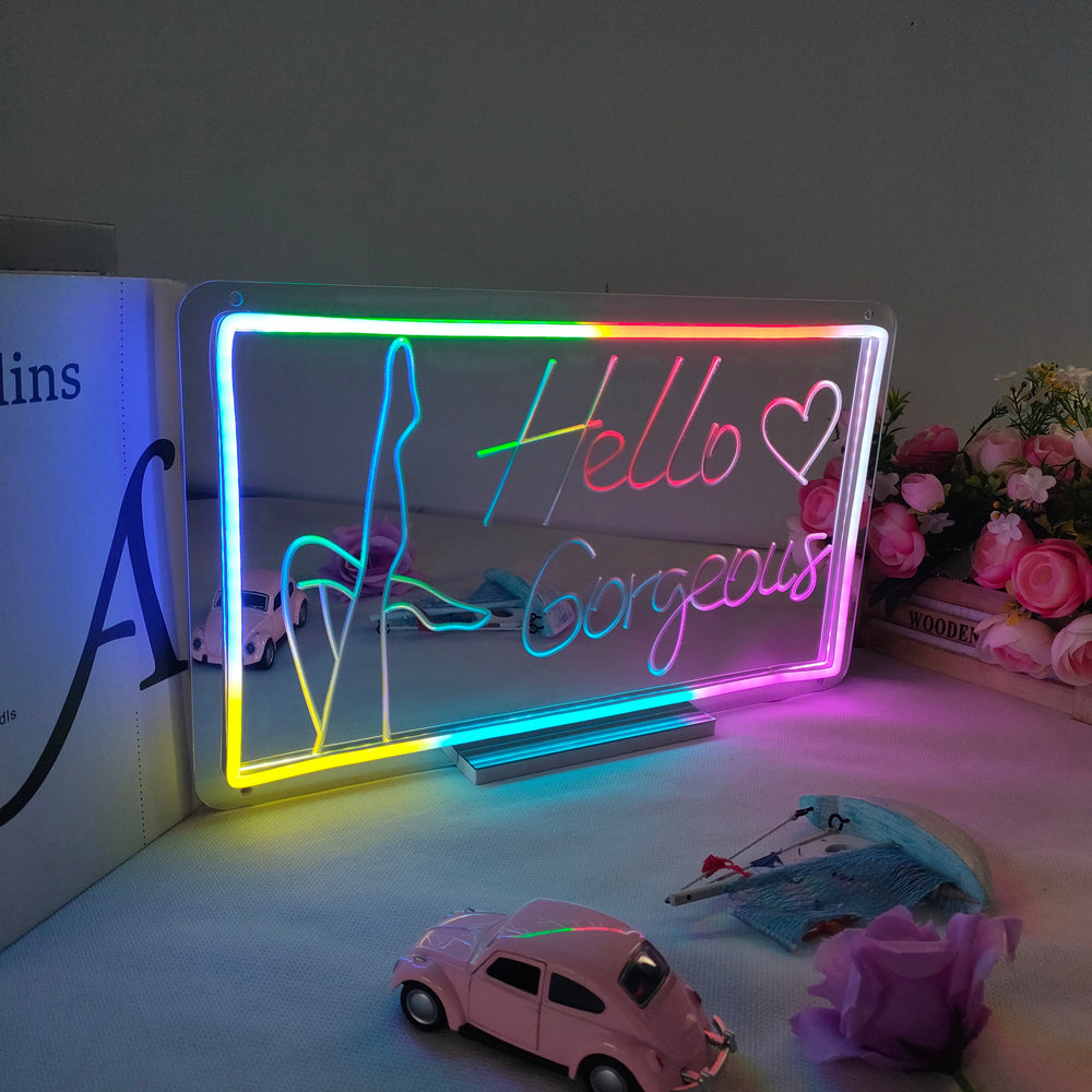 "Hello Gorgeous, Drømmende Fargeendring" Neonskilt med spejlbagside