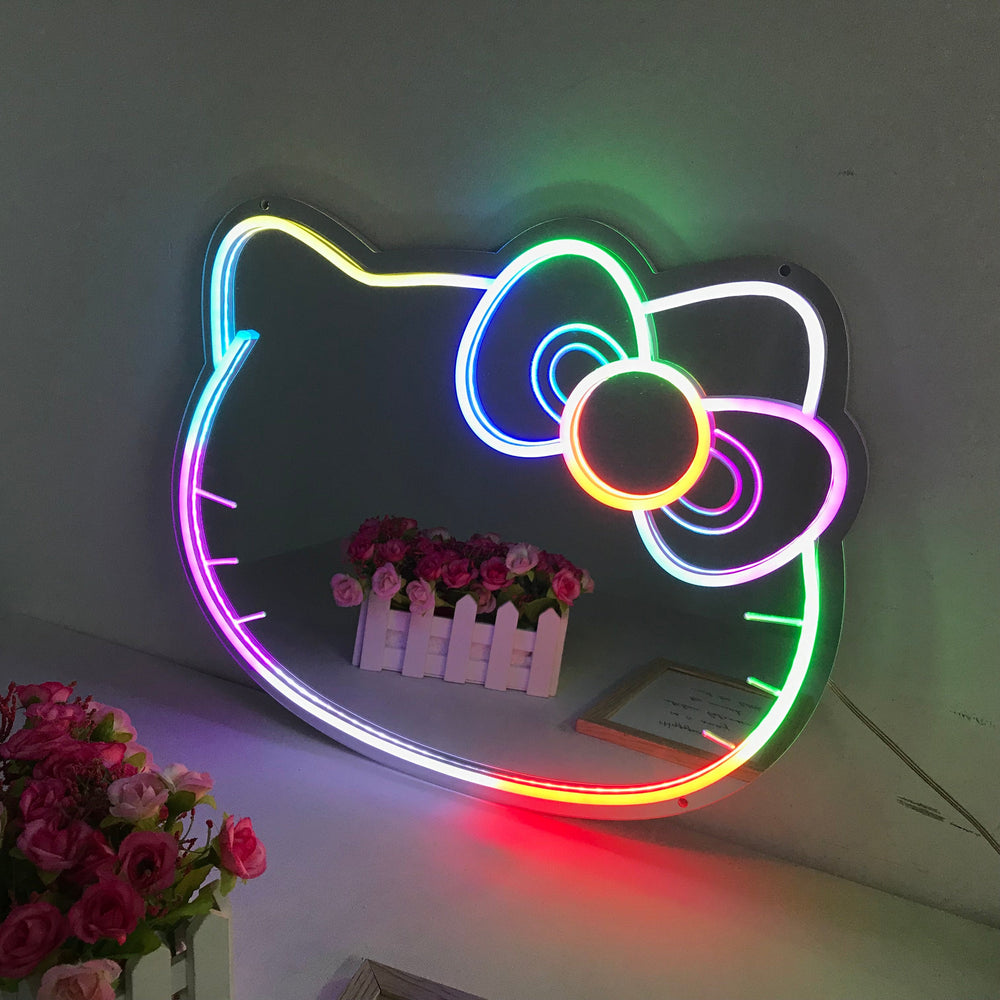 "Kitty Cat, Tegneserie, Drømmende Fargeendring" Neonskilt med spejlbagside