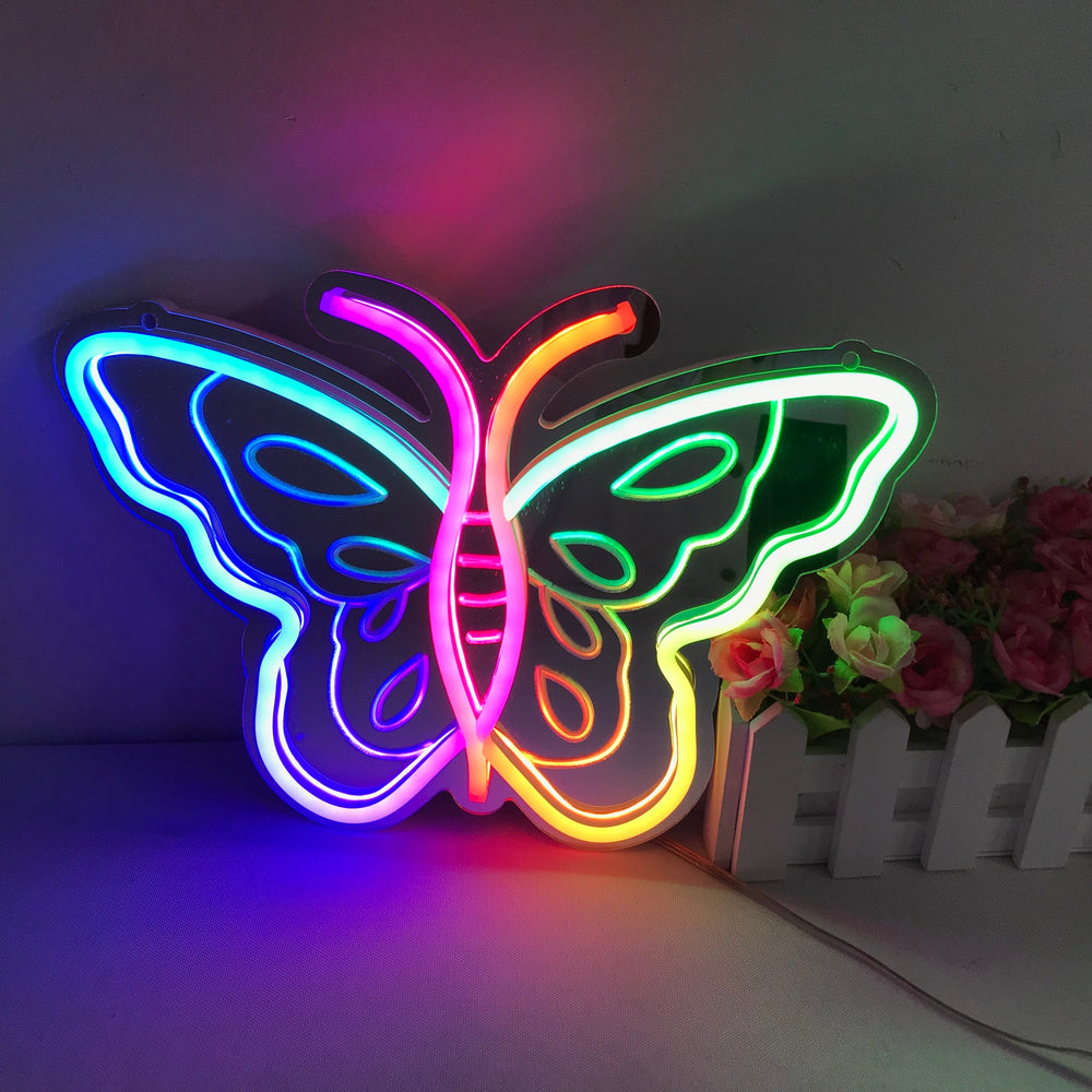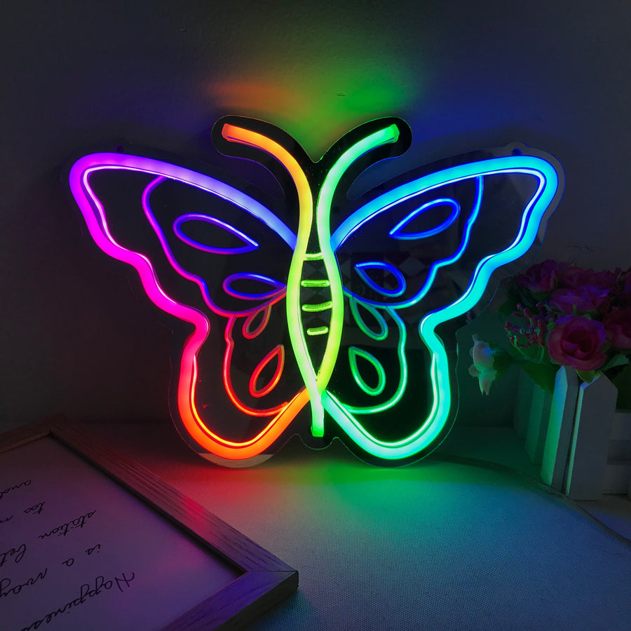 "Sommerfugl, Drømmende Fargeendring" Neonskilt med spejlbagside