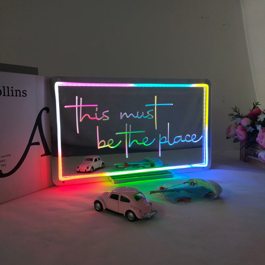"This Must Be The Place, Drømmende Fargeendring" Neonskilt med spejlbagside