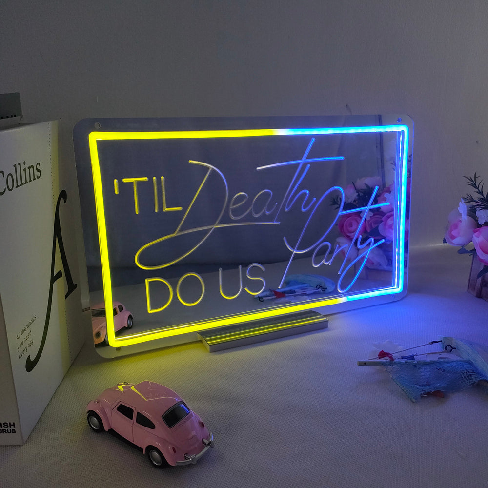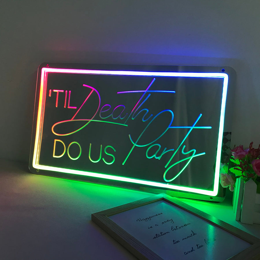 "Till Death Do Us Party, Drømmende Fargeendring" Neonskilt med spejlbagside
