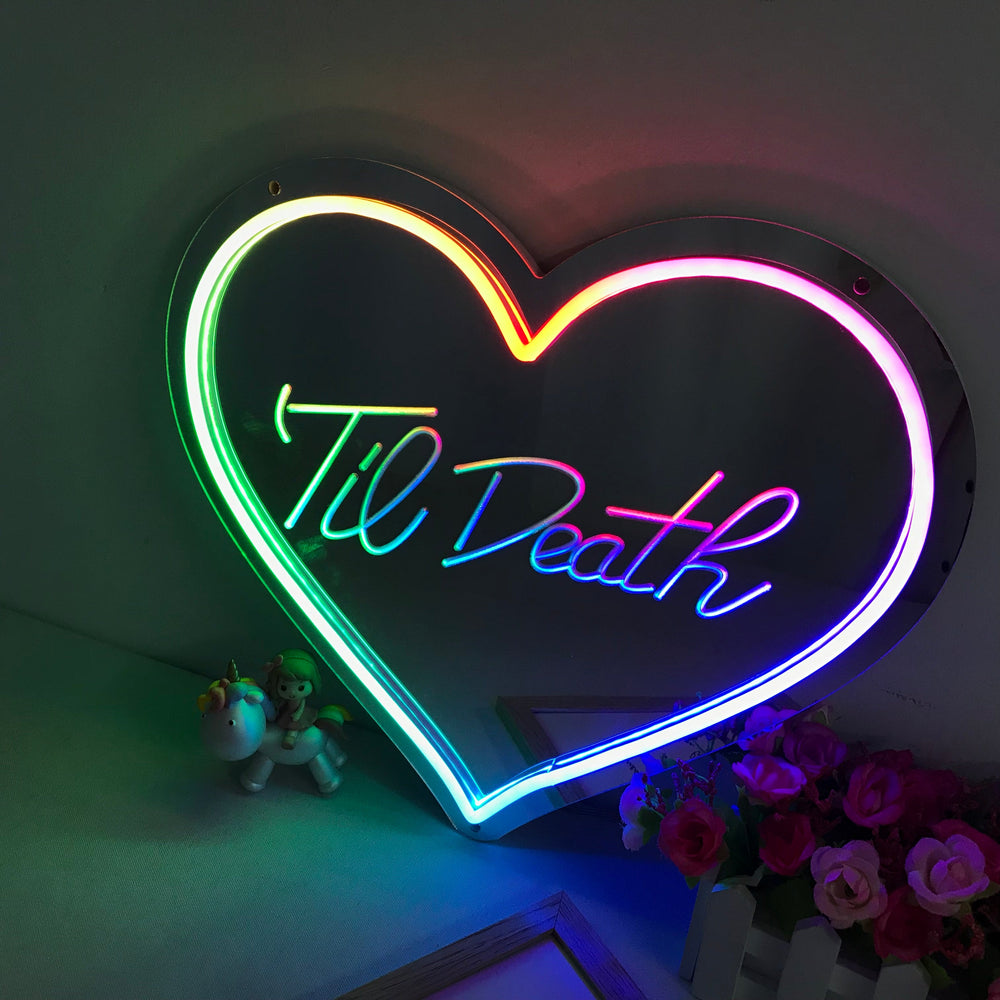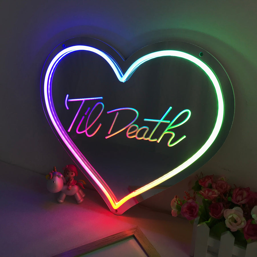 "Till Death, Drømmende Fargeendring" Neonskilt med spejlbagside