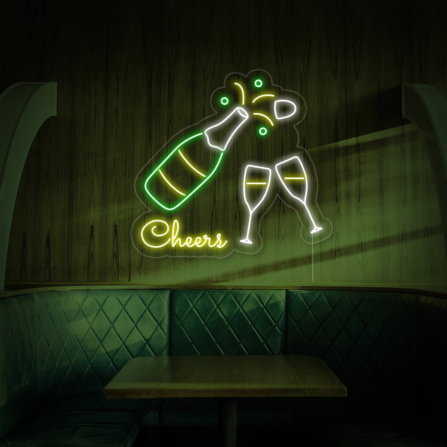 "Champagneflaske, Champagneglas, Cheers" Neonskilt