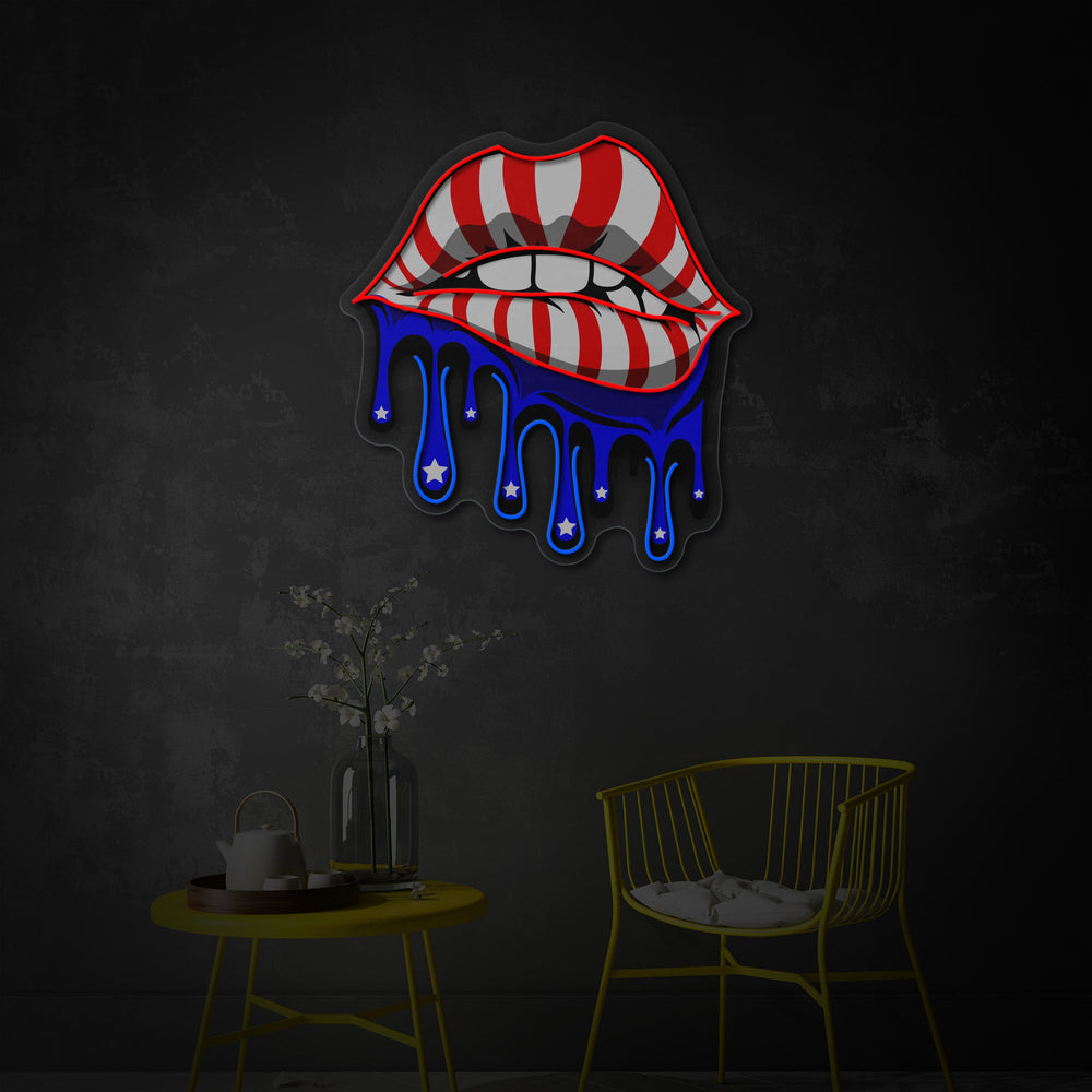 "Læber med amerikansk flag dryppende" UV-printet LED-neonskilt