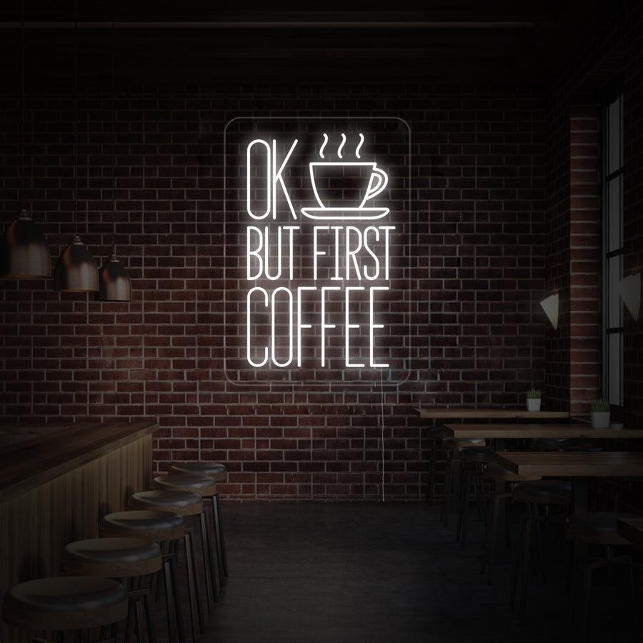"Ok But First Coffee" Neonskilt