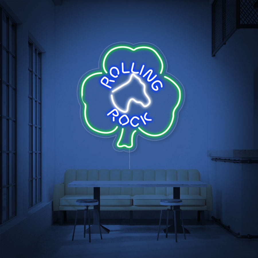 "Rolling Rock, Hestehoved, Skumfidusplante" Neonskilt