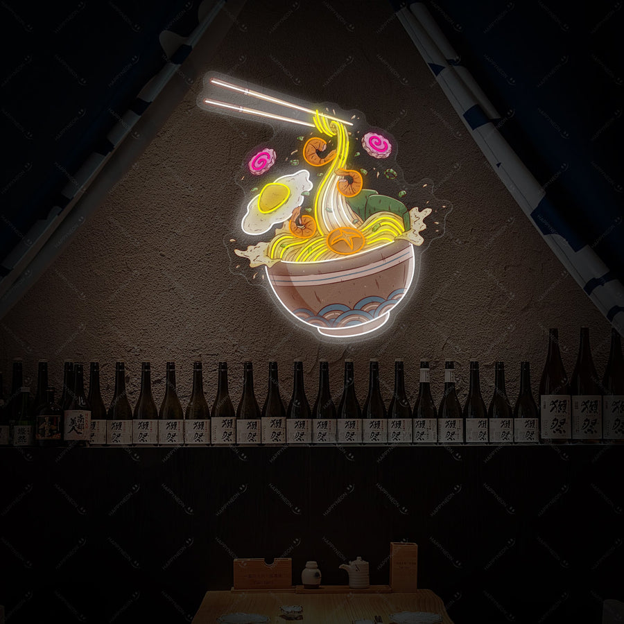 Vores ramen-neonskilte er perfekte til køkkenet, spiseområdet eller som prikken over i'et i din restaurant, og de blander kunst med et strejf af kulinarisk nostalgi. Bring varmen og smagen af ramen ind i din indretning, og lad din passion for det japanske køkken skinne igennem!