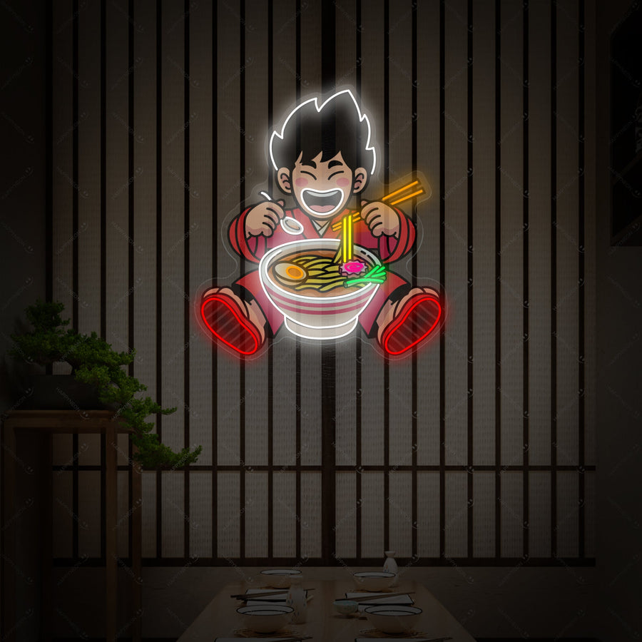 Dreng og Ramen-nudler Neonskilt, Indretning af japansk restaurant - HAPPYNEON