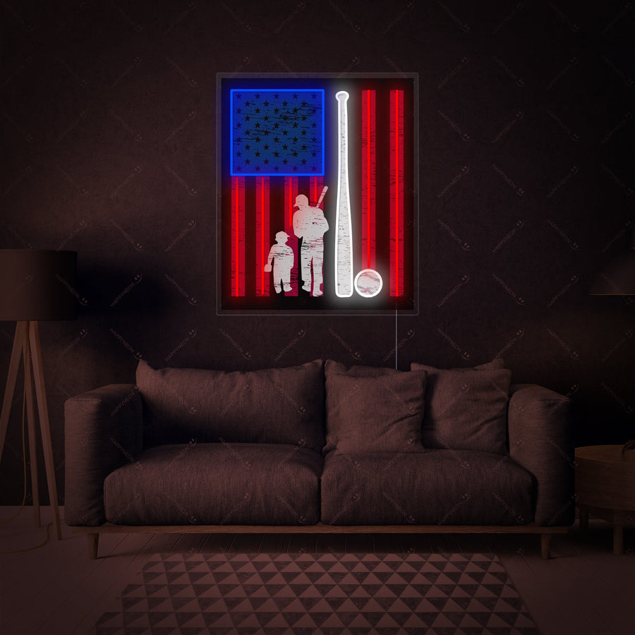 "Far og søn baseball" Neonskilt - HAPPYNEON